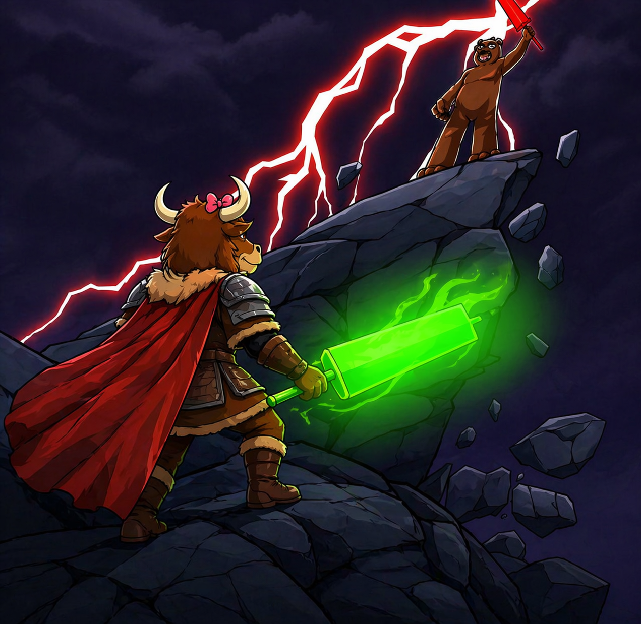 Bulla feel power grow. Hooves strong. Ground shake. Bulla ready charge.